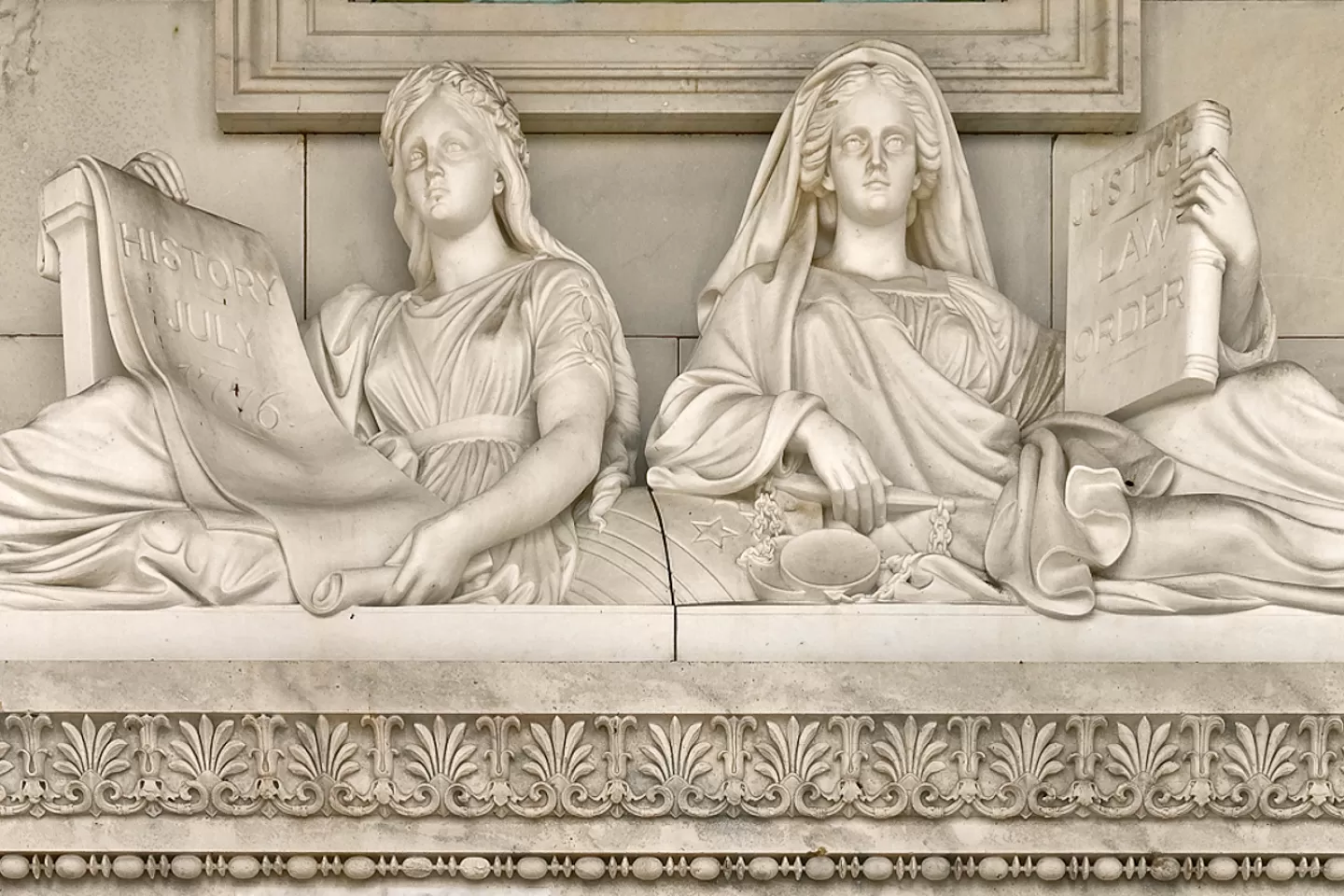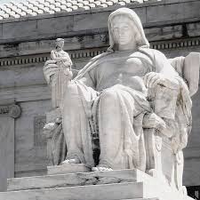 Outside the Supreme Court building stands the Contemplation of Justice statue by sculptor, James Earle Fraser. This seated female figure holds in her right hand a smaller standing figure, a blindfolded Lady Justice cradling a set of scales against her heart. The Genius of America pediment at the East Central entrance to the U.S. Capitol building is graced with three distinct figures, individually representing America, Justice and Hope. In the center we have the female figure symbolizing “America”, who rests her right arm on a shield inscribed "USA" atop a pedestal inscribed July 4, 1776”. Her left arm points left to our Lady Justice, holding the scales in one hand and the Constitution in the other. To America's left are an Eagle and the female figure of Hope, who rests her arm on an anchor. The Justice and History sculpture by American sculptor Thomas Crawford sits above the senate doors, featuring 2 female figures reclining upon a globe; Justice holds a book inscribed “Justice/Law/Order” in one hand and a set of scales in the other hand; History holds a scroll inscribed “History July 1776”. There are many more depictions of the scales and Lady Justice around our Capitol, including the base of the lamposts outside the Supreme Court plaza and even inside the courtroom itself. How is it that we as a nation have come to forget her, despite her ubiquitous presence amongst the nation's most prominent institutions of power? Our leaders, lawmakers, and judges see these symbols every day and yet their clear message and symbolism seem to have faded from their thoughts and actions. We are facing a profoundly sad era in American democracy where truth and justice are carelessly discarded and stomped upon. How far we have fallen from the noble intentions of our founding fathers. :( In the iconic words of George Washington himself: the due administration of justice is the firmest pillar of good Government.